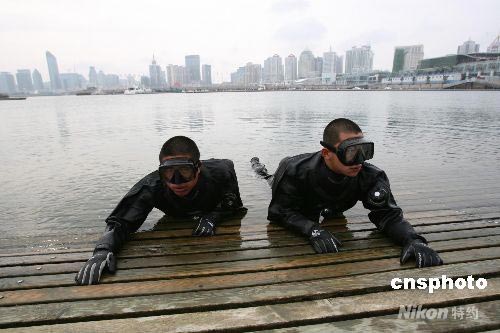 暑期,青島邊防支隊(duì)駐奧帆中心的特勤官兵在奧運(yùn)會(huì)帆船比賽場(chǎng)地進(jìn)行適應(yīng)性潛水訓(xùn)練,在貼近實(shí)戰(zhàn)狀態(tài)下提高隊(duì)員處置突發(fā)事件等能力。第29屆奧運(yùn)會(huì)帆船帆板比賽將于2008年8月9日至23日在青島國際帆船中心及周邊水域舉行。 中新社發(fā) 王瑤 攝