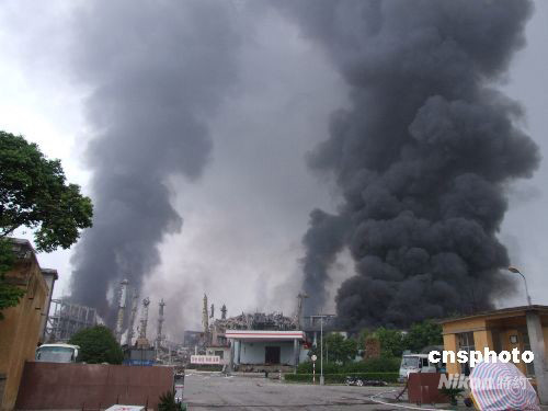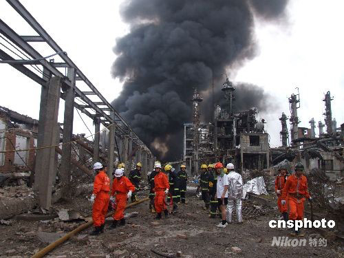 8月26日6時許,廣西宜州市郊的廣西維尼綸集團有限責任公司車間發生爆炸并引發大火,截至當日15時30分,醫院收治傷員增加至55人,死亡人數增至5人,失去聯系人員減至14人。 中新社發 楊繼武 攝