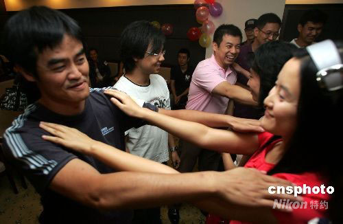 9月6日,北京舉行“尋覓我的精品戀人、MBA精英交友會”,200多名中國TOP10商學院的MBA精英、企業(yè)精英、才子佳人集體相親。該活動主辦方表示該活動的特別之處在于活動環(huán)節(jié)主要圍繞如何尋覓到相容度高的心靈伴侶展開;閼賹<覀兙脑O(shè)置了“相容式配對”互動游戲,在活動游戲環(huán)節(jié)中融入了“相容成就幸;橐觥钡睦砟,幫助參加互動游戲的單身男女們在配合的過程中碰到愛情火花,從而提高活動的成功率。中新社發(fā) 楊可佳 攝