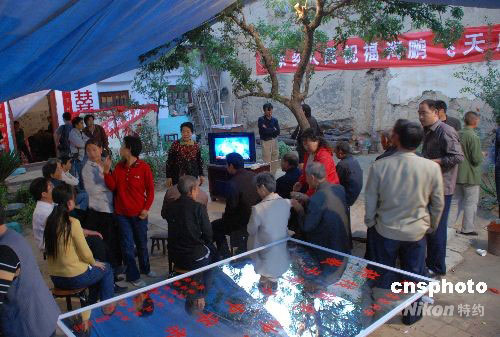 景海鵬的父親特意在自己家的院子里搭起一個(gè)棚子,供鄰居和親戚朋友觀(guān)看“神七”升空的電視直播。