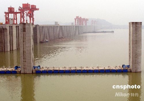 2008年10月7日,經過近10天持續不斷地蓄水,三峽工程大壩壩前水位達到155.5米,并保持在該水位以上運行,實現了2008年汛后先期蓄水至156米水位的目標,是否向175米水位抬升尚需再檢測并研究三峽大壩運行情況、三峽庫區地質災害狀況等之后再做決定。按設計要求,三峽工程分135米、156米、175米三個水位進行蓄水。此前,三峽工程已于2006年、2007年兩次蓄至156米水位高程。中新社發 劉君鳳 攝