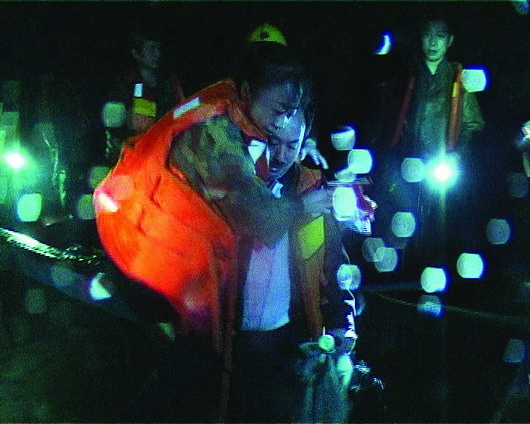 晚上8時30分許,距離兩人被困已經過去了整整6個多小時,葛、田饑寒交迫,著急地向岸上呼救。岸上的救援隊員一邊喊話穩定兩人情緒,一邊做好救援準備。晚上9時許,6名救援隊員組成了救援小分隊,坐上沖鋒舟飛快地駛向孤島,將葛、田二人接上沖鋒舟救回,整個過程只花了12分鐘。