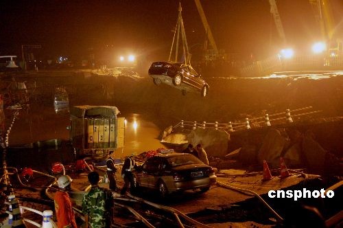 十一月十五日下午,杭州地鐵施工現(xiàn)場(chǎng)發(fā)生塌陷事故,截至十六日上午九時(shí)許,救援人員在地鐵塌陷處又發(fā)現(xiàn)一具遇難者尸體,經(jīng)初步核查,事故中施工人員已有三人死亡,十七人失蹤。事故原因正在進(jìn)一步查明中。圖為救援現(xiàn)場(chǎng)。中新社發(fā) 江耘 攝