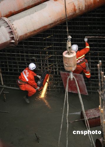 十一月十七日上午十一時許,浙江消防總隊長張華鋒再次親臨杭州地鐵塌陷搶險救援現場,部署指揮第二階段搶險救援工作。圖為今天浙江消防隊員開展救援工作。中新社發 江耘 攝