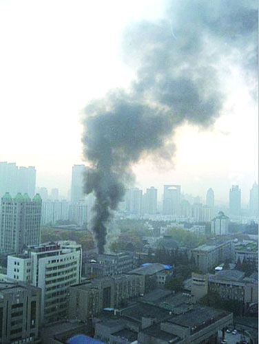 東南大學(xué)動(dòng)力系的小陳當(dāng)時(shí)正在做實(shí)驗(yàn),忽然聽(tīng)到外面有人喊:“失火了!”他朝外面一看,電子系實(shí)驗(yàn)樓上冒出一根“煙柱”,空氣中彌漫著一股焦糊味。小陳急忙跑下樓,往冒煙的位置跑過(guò)去,此時(shí)有不少同學(xué)紛紛往冒煙處聚集。