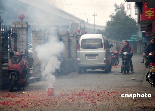 2月2日,正月初八,杭州的許多公司單位第一天上班,按慣例燃放“開門炮”期待開門紅。當日上午八點左右,杭州城內爆竹聲此起彼伏。中新社發(fā) 金斌 攝