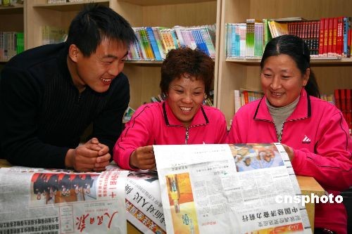 3月7日,北京市懷柔區(qū)雁棲鎮(zhèn)陳各莊村村民正在村中“益民書屋”閱讀“全國兩會”專題報道內容。全國“兩會”召開以來,京郊農民十分關注特別是有關“三農”議題,黨中央關于“三農”的有關新政策,極大的鼓舞了京郊農民艱苦創(chuàng)業(yè)的勇氣,堅定了農民勤勞致富奔小康的信心。中新社發(fā) 卜向東 攝