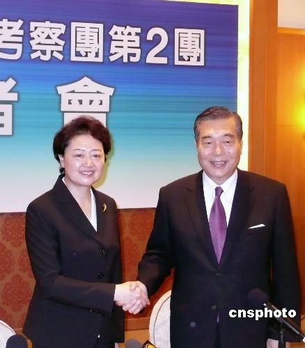 第二批“兩岸經(jīng)貿(mào)促進(jìn)考察團(tuán)”7月13日在臺(tái)北與268家臺(tái)灣廠商就零售消費(fèi)品采購(gòu)展開(kāi)洽談。圖為率團(tuán)前來(lái)的商務(wù)部商貿(mào)服務(wù)司副司長(zhǎng)、海峽兩岸經(jīng)貿(mào)交流協(xié)會(huì)特約理事門(mén)曉偉(左)與臺(tái)北世貿(mào)中心董事長(zhǎng)王志剛共同接受記者訪問(wèn)。中新社發(fā) 劉舒凌 攝