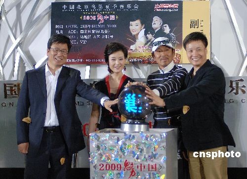 5月18日傍晚,將于6月30日上演的2009魅力中國(guó)北京鳥巢夏季音樂會(huì),在北京召開第二次新聞發(fā)布會(huì)暨開票儀式,宣布音樂會(huì)正式進(jìn)入倒計(jì)時(shí)。陳道明、閻維文、白巖松三位“好男人”作為宋祖英的好友現(xiàn)場(chǎng)助陣。據(jù)透露,這場(chǎng)音樂會(huì)將是鳥巢第一次使用單面立體舞臺(tái),將配置最頂尖的燈光音響設(shè)備,而宋祖英在音樂會(huì)上不僅要以充滿視覺沖擊的六套華服實(shí)現(xiàn)形象大突破,更有望與周杰倫或者多明戈激情共舞。中新社發(fā) 李學(xué)仕 攝