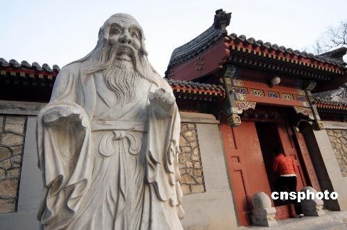 2月20日,記者在北京大學看到約兩米高的老子雕像神態(tài)威嚴,置于胸前的雙手十指都已破損,其中右手的五指齊根斷掉,左手一根手指被弄斷了半截,其余四指均有不同程度的破損。同時,老子雕像右眼眉毛也被弄斷了半截。另據了解,雕塑老子是校友們贈送給母校北京大學百年生日的禮物。據說,當年為了把雕塑從南方運到北大也花了不少工夫。中新社發(fā) 吳芒子 攝