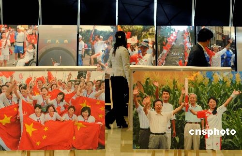 圖為在總結大會上,火炬接力的圖片展覽。