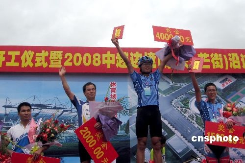 11月2日,首屆中越邊境(東興—芒街)沿邊自行車邀請(qǐng)賽在廣西東興沿邊公路舉行。此次邀請(qǐng)賽共有77名參賽選手,其中越南籍選手18人。今次比賽從廣西東興市體育館出發(fā),途經(jīng)晚清和越南法國殖民當(dāng)局劃界所立的“一號(hào)界碑”,全程25公里。中新社發(fā) 袁鶯 攝