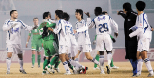 在昨晚的“京津對話”中,主場作戰的北京國安隊2比2戰平天津泰達隊,雙方各得1分。在比賽的最后階段,濃重的火藥味和兩度群體沖突也給這場比賽帶來了不和諧音。比賽即將結束時,郭輝和天津隊譚望嵩之間發生了肢體接觸。據郭輝本人透露,當時譚望嵩試圖對他飛鏟,在被郭輝躲開后,譚望嵩破口大罵。更不和諧的一幕發生在賽后,天津隊球員走下場時,以隊長曹陽為首,高舉雙手向看臺上的北京球迷豎起了中指。記者親眼看到,直到走進球員通道,曹陽才將高舉的雙臂放下。(記者 周蕭)
