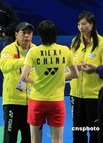 11月19日,在上海舉行的2008年中國羽毛球公開賽展開正賽首輪爭奪,中國羽壇老將、北京奧運(yùn)會女單冠軍張寧(圖右),上任國家隊女單教練后首次亮相賽場督戰(zhàn),格外引人關(guān)注。中新社發(fā) 湯彥俊 攝