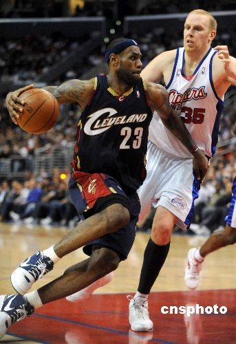 當(dāng)?shù)貢r(shí)間三月十日晚,NBA東部賽區(qū)暫列第一的克利夫蘭騎士隊(duì)在客場上演大逆轉(zhuǎn),在落后十九分的情況下,最終以八十七比八十三戰(zhàn)勝洛杉磯快船隊(duì)。騎士隊(duì)球星勒布朗·詹姆斯打出“三雙”,貢獻(xiàn)三十二分、十三個(gè)籃板和十一次助攻。中新社發(fā) 張煒 攝