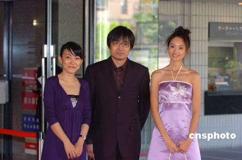 10月28日下午,第20屆東京國際電影節在東京澀谷文化村舉行頒獎典禮,中國影片《西干道》獲得評委會特別獎。圖為該片導演李繼賢(中)、編劇李薇(左)和主演沈佳妮(右)在閉幕式開始前的紅地毯走秀時向在場記者示意。中新社發 滕劍峰 攝
