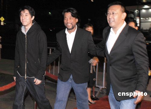 中美電影節十一月一日晚在好萊塢美國導演公會開幕,中國影星及導演姜文(右)和成龍之子房祖名(左)一起走紅地毯,出席《太陽照常升起》北美首映式。中新社發 賈國榮 攝