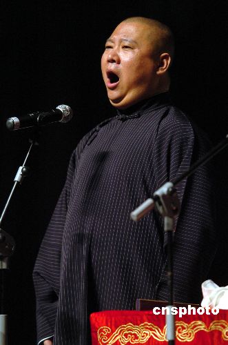 2008年1月13日晚,郭德綱率德云社在深圳體育館送上“德云社深圳新春相聲晚會”。郭德綱和于謙搭檔帶來多個新段子,其中《誰動了我的減肥茶》、《警察故事》、《文學家》等作品,大抖“連環包袱”,讓數千名觀眾大飽耳福。中新社發 吳峻 攝