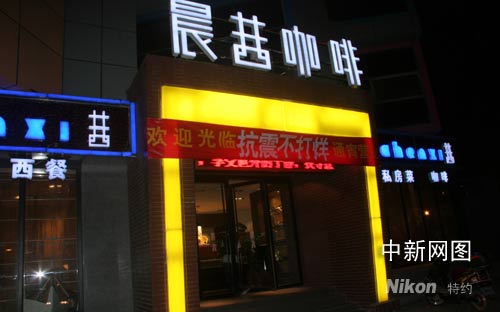 石家莊一咖啡廳打出“抗震不打烊”的口號。據該咖啡廳的老板介紹,他起初聽到謠言說今晚有2-6級余震,便想出來這個主意來安穩民心。后經相關部門和媒體辟謠,市民一切正常,所以生意和平時一樣。俱凝搏 攝
