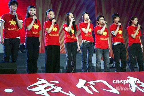 5月25日晚,由13家國家一級社會組織共同主辦的“情暖汶川·我們在行動——全國社會組織抗震救災募捐義演”在北京首都體育館舉行,來自社會各界的1萬余名觀眾參加了此次募捐活動,F場籌得款物將通過中華慈善總會全部捐給地震災區。中新社發 趙雋 攝
