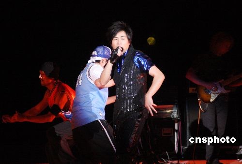11月15日晚,大陸歌手胡彥斌在臺北舉辦2008《男人歌》個人演唱會。他成為大陸歌手在臺灣開演唱會的第一例。圖為胡彥斌臺北演唱會情形。中新社發 黃少華 攝
