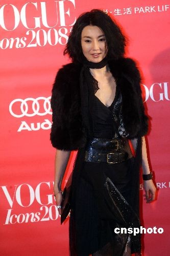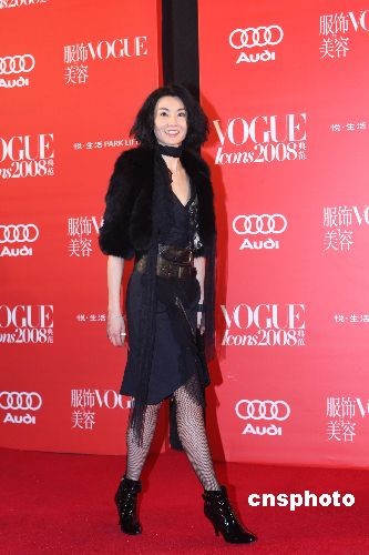 V0GUE2008年度盛典12月6日夜在北京銀泰中心舉行。當晚的紅地毯可謂星光熠熠,除了中田英壽、高圓圓、梁詠琪等明星前來捧場,還有凱特·摩絲、俄羅斯“精靈”Sasha、呂克貝松的前妻米拉·喬沃維奇以及杜鵑等眾多國際名模冒著嚴寒盛裝走秀。不過最耀眼的當屬張曼玉,她不僅作為壓軸嘉賓最后出場,還引起了現場攝影記者的一陣騷亂。中新社發 楊可佳 攝