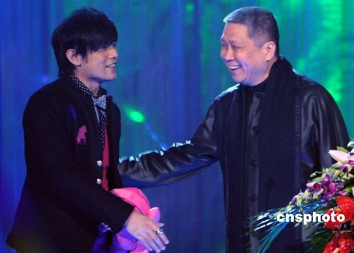 12月28日,“音樂·愛”2008中國移動無線音樂咪咕匯在北京舉行,著名收藏夾馬未都為周杰倫揭開獎項。馬未都說他對周杰倫的《青花瓷》很熟悉,“我在百家講壇上講十個青花瓷不敵周杰倫在春晚上唱一支歌!彼M芙軅悓戆阎袊那嗷ù啥紝懗筛。周杰倫當晚奪得無線音樂最高銷量男歌手。該獎項由中國移動舉辦,以歌手在其手機網絡平臺上歌曲下載數量為主要評判依據。中新社發 廖攀 攝