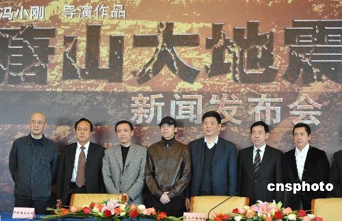 2月25日,馮小剛新作——災難史詩大片《唐山大地震》在北京宣布啟動,中影集團、華誼集團的高層以及唐山市政府的領導和導演馮小剛出席了發布會。馮小剛表示:這部電影的預期開機時間是2009年7月,有望在明年的暑期檔,唐山大地震紀念日上映。目前演員尚未確定,電影總投資額將超過1.5億元。中新社發 李學仕 攝