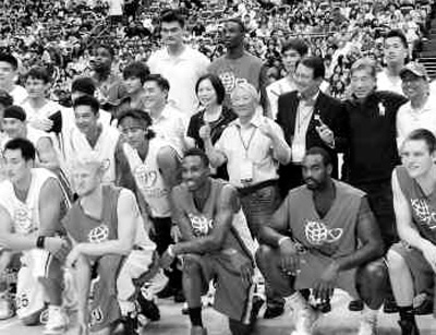 姚明因為腳傷沒有痊愈,沒能上場出戰,不過在活動游戲環節,姚明現場表演了投3分的活動,讓現場觀眾大呼過癮。(記者 徐蕾 吳亞明)