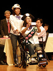 中新網12月19日電 高雄市第七屆“立委”參選人今天(19日)進行號次抽簽,參選人莫不花招百出,其中民進黨“立委”管碧玲坐著輪椅負傷前往抽簽且一身海洋船長裝扮。她并自我解嘲說“獨一無二、無以輪比”,頗有創意。