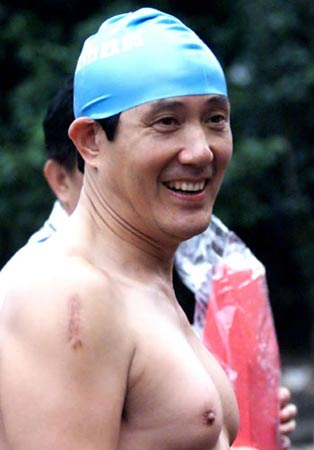 中新網2月27日電 臺灣《聯合報》日前選登一組資料圖片,以“漏網鏡頭”為名展示了二00八年臺灣地區領導人選舉國民黨候選人馬英九少為人知的一面,其中不乏大秀胸肌、粉墨豋場、與女性選民擁抱的有趣畫面。
