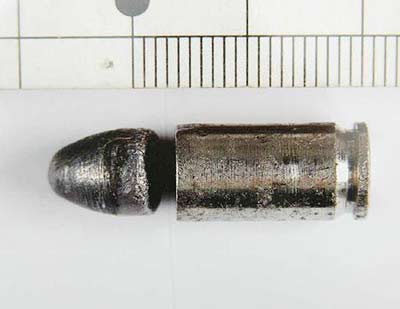 臺北市刑事警察局召開記者會,澄清陳水扁遭槍擊所用的槍支并非媒體所報導的掌心雷,圖為槍傷陳水扁鉛質彈頭的子彈,是在陳水扁的夾克發現。