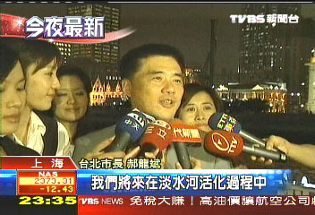 中新網6月25日電 據臺灣TVBS發自上海的報道,正在上海參訪的臺北市長郝龍斌,24日晚上游覽黃浦江美景。外灘的萬國建筑和浦東大廈燈景,讓郝龍斌想到曾經承諾的活化藍色公路的政見。但礙于堤防受限,郝龍斌說,要把外灘燈景移植臺北,還要臺北市民再等一等。