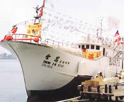 遠洋漁船“圣恩一六八號”出海時的照片。