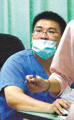 陳水扁女婿趙建銘去年三月離開臺大醫院后,轉至臺南縣新樓醫院麻豆分院看診,近日傳出醫療糾紛,圖為他平日看診情形。資料照片/謝玲玉攝