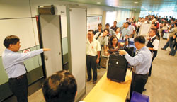 無(wú)論通關(guān)后或登機(jī)前,都有安檢人員特別“伺候”,把每一個(gè)旅客的行李都打開(kāi)檢查。男性安檢人員有時(shí)還要檢查女性的衣物,引來(lái)一陣尷尬。