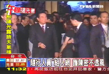 報道稱,陳云林此次赴臺,除了臺灣出動大批警力保護外,陳云林也帶著貼身隨行人員。依據對等原則,臺灣方面同意陳云林隨行人員隨團。