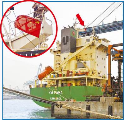 基隆港務警察局調(diào)查,陽明海運公司承租的9000噸、塞浦路斯籍“YM FA HA”貨輪19日從香港載貨后,清晨駛?cè)牖「郏2礀|八碼頭卸貨。