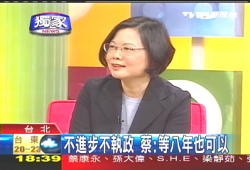 當被問到民進黨什么時候可以重新“執政”時,蔡英文表示,8年也還可以勉強接受。圖片來源:臺灣TVBS