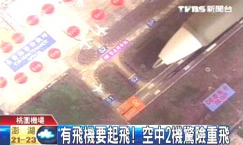 這是去年6月發(fā)生在桃園機場的驚險畫面,原本準(zhǔn)備降落的飛機趕快急拉再升空,但沒想到事隔多月,驚險重飛的場景再上演。飛航管制總臺人員:“長榮地上的飛機用中文跟塔臺說,它好像鼻輪已經(jīng)過了等待線,所以塔臺處置,讓天上的飛機重飛!