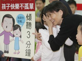 臺(tái)“兒童福利聯(lián)盟文教基金會(huì)”今天上午舉辦“臺(tái)灣兒童快樂(lè)生活大調(diào)查”發(fā)表記者會(huì),邀請(qǐng)周美青到場(chǎng)與20多名國(guó)小學(xué)童對(duì)談,由周美青與基金會(huì)董事長(zhǎng)馮燕擔(dān)任老師,傾聽(tīng)小朋友心聲,并詢問(wèn)小朋友課業(yè)、休閑及困擾等問(wèn)題,小朋友答詢活潑可愛(ài),過(guò)程中歡笑聲不斷。