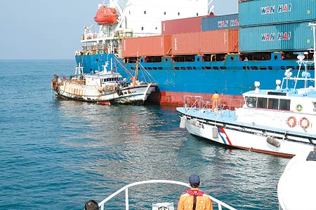 圖:臺(tái)灣漁船與萬(wàn)噸貨輪迎頭對(duì)撞