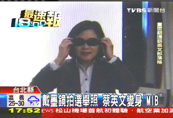 中新網(wǎng)6月15日電 據(jù)臺灣《中國時報》報道,民進黨主席蔡英文參選新北市長的選舉定裝照昨日曝光,引人注目的是,“蔡教授”這回一反拘謹形象,在攝影棚中戴起大墨鏡“耍酷”,活像“MIB星際戰(zhàn)警”但旁人怎么看都不對勁,甚至還感覺她有些“搞笑”,所以戴沒幾秒立刻換掉,讓她打趣地說,“真象是在拍雜志,蠻好玩的。”