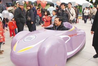 國際燃料電池車觀摩會昨天在自然科學博物館舉辦,臺中市長胡志強當場允諾明年將于水湳機場舉辦國際氫能車大賽,屆時將由明道大學規劃、市府全力支持;讓明道校長汪大永感動地說:“這真是最好的禮物”。