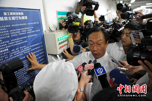 報道說,郭臺銘今天上午陪同200多名臺灣、香港、大陸及外籍媒體記者參觀富士康部分廠房,期間郭臺銘并沒有回答媒體記者的提問。