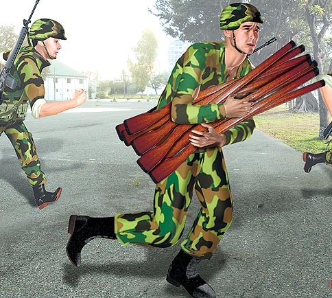 軍檢調(diào)查指出,郭景志還刻意指揮整排士兵跑來(lái)跑去,并下令蘇詠盛單獨(dú)將演習(xí)用的11把木槍(重約近15公斤)抱在身上,不論工作吃飯、上廁所,一律“槍不離身、抱一整天”。