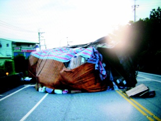 中新網(wǎng)8月24日電 據(jù)臺(tái)灣《聯(lián)合報(bào)》報(bào)道,一輛載滿(mǎn)賑災(zāi)物資準(zhǔn)備送到臺(tái)東縣太麻里的大貨車(chē),二十三日清晨行經(jīng)花蓮縣富里鄉(xiāng)臺(tái)九省道時(shí)翻覆,貨車(chē)司機(jī)余正輝當(dāng)場(chǎng)死亡,隨車(chē)助理林清華輕傷。警方抽血檢測(cè),懷疑余正輝酒后駕車(chē),車(chē)速過(guò)快才發(fā)生意外。