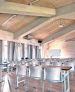 林志成2009年負(fù)責(zé)興建的“仰山會館”,也融入許多宜蘭厝的精神,包括一樓入口處半室內(nèi)空間與停車場結(jié)合,下雨時就可作為活動空間,外墻以宜蘭的洗石子傳統(tǒng)建材、斜屋頂適應(yīng)宜蘭的多雨天候;但他也表示,斜屋頂造成三樓會議空間的聲音無法集中,必須以不規(guī)則的天花板來修正音場。