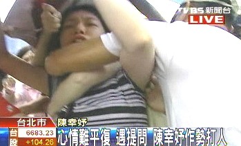 陳幸妤連日來傳出因為遭限制出境,無法赴美進修而心情不穩,見到媒體提問,對于陳水扁寫信向馬英九陳情,陳幸妤聽完問題后,變的激動情緒崩潰,更一度沖向記者,作勢要拍打媒體鏡頭。