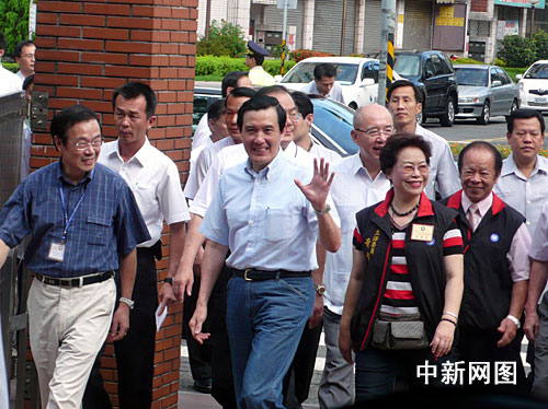 中新網臺北7月26日電 (記者 劉舒凌)上午8點半前,參與中國國民黨主席選舉的臺灣領導人馬英九在現任黨主席吳伯雄等黨內人士陪同下前往設在臺北市文山區靜心小學的投票所投票。他說,我出來參選是為了承擔責任,最主要是把黨政運作更緊密結合,讓臺灣政治事務推動更為有效。